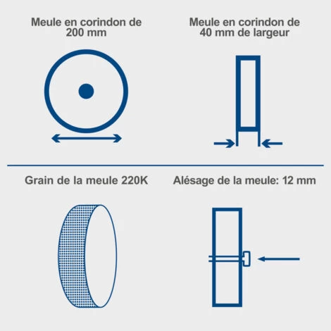 - Dimensions de la meule / largeur : 200 x 40 mm