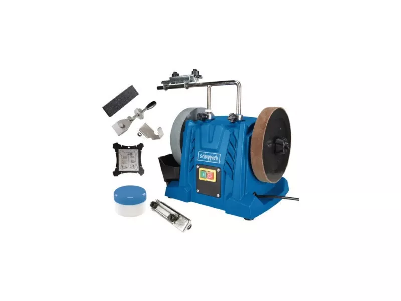 - En outre, vous pouvez retrouver également un dispositif 70 universel qui est compatible avec de multiples produits, une prépare meule augmentant le grain pour l’affûtage; un positionneur d’angle et une pâte d’affilage qui vous permettra de parfaire l’affûtage en polissant parfaitement le tranchant de vos outils.