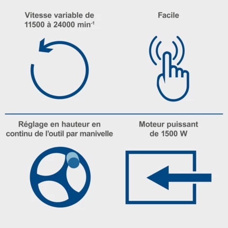 Grâce à la commande de vitesse variable de 11500 à 24000 tours par minute, la pièce peut être traitée de manière optimale. Le moteur de 1500 W assure également une puissance suffisante.
