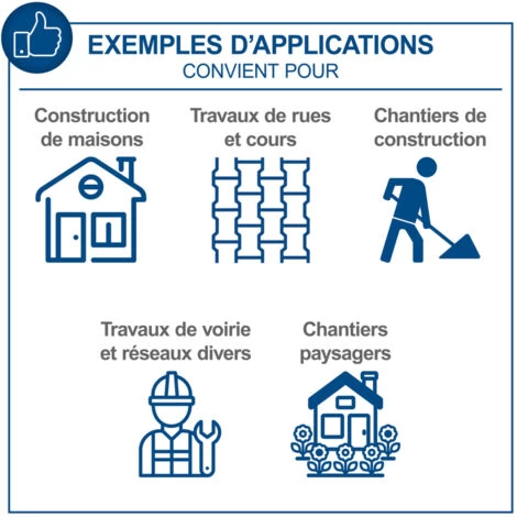 • Livrée avec un tapis en caoutchouc pour les travaux de pavage