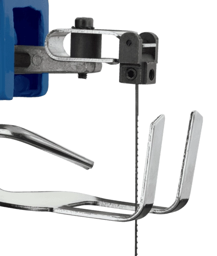 – Bouton de tension de lame qui permet le serrage et le desserrage rapide pour le changement de lame