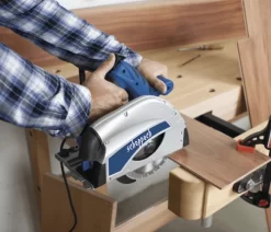 – Cette scie permet Ă©galement de rĂ©aliser des coupes parfaites sans utiliser le rail.