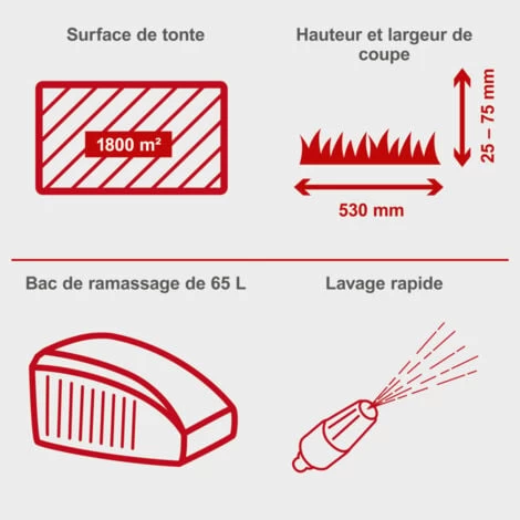 - Hauteur de tonte ajustable à 7 positions (25 à 75 mm)