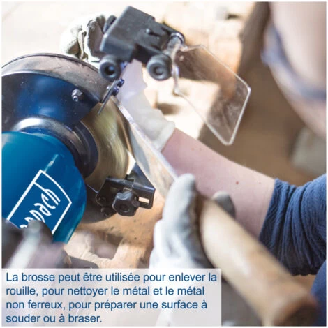 - Inclus : une brosse à fils métalliques de 150 mm de diamètre, une meule de dégrossissage
